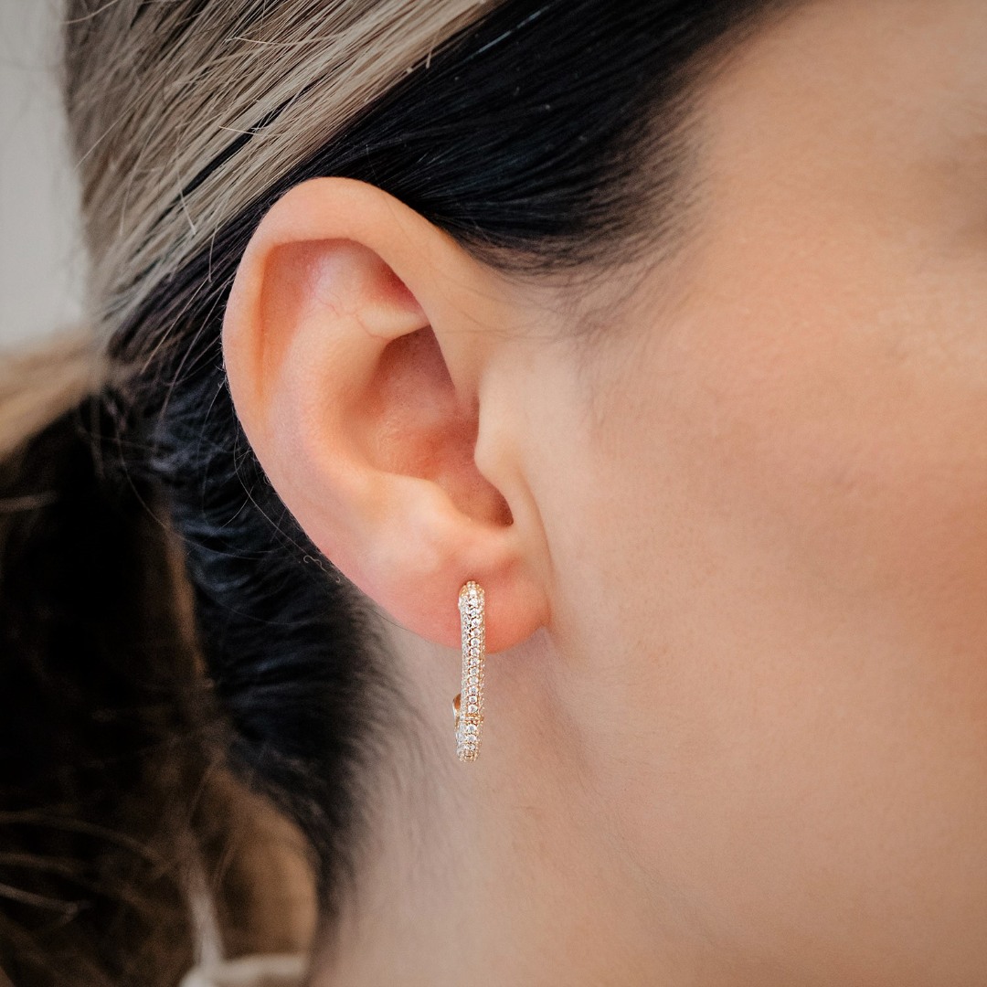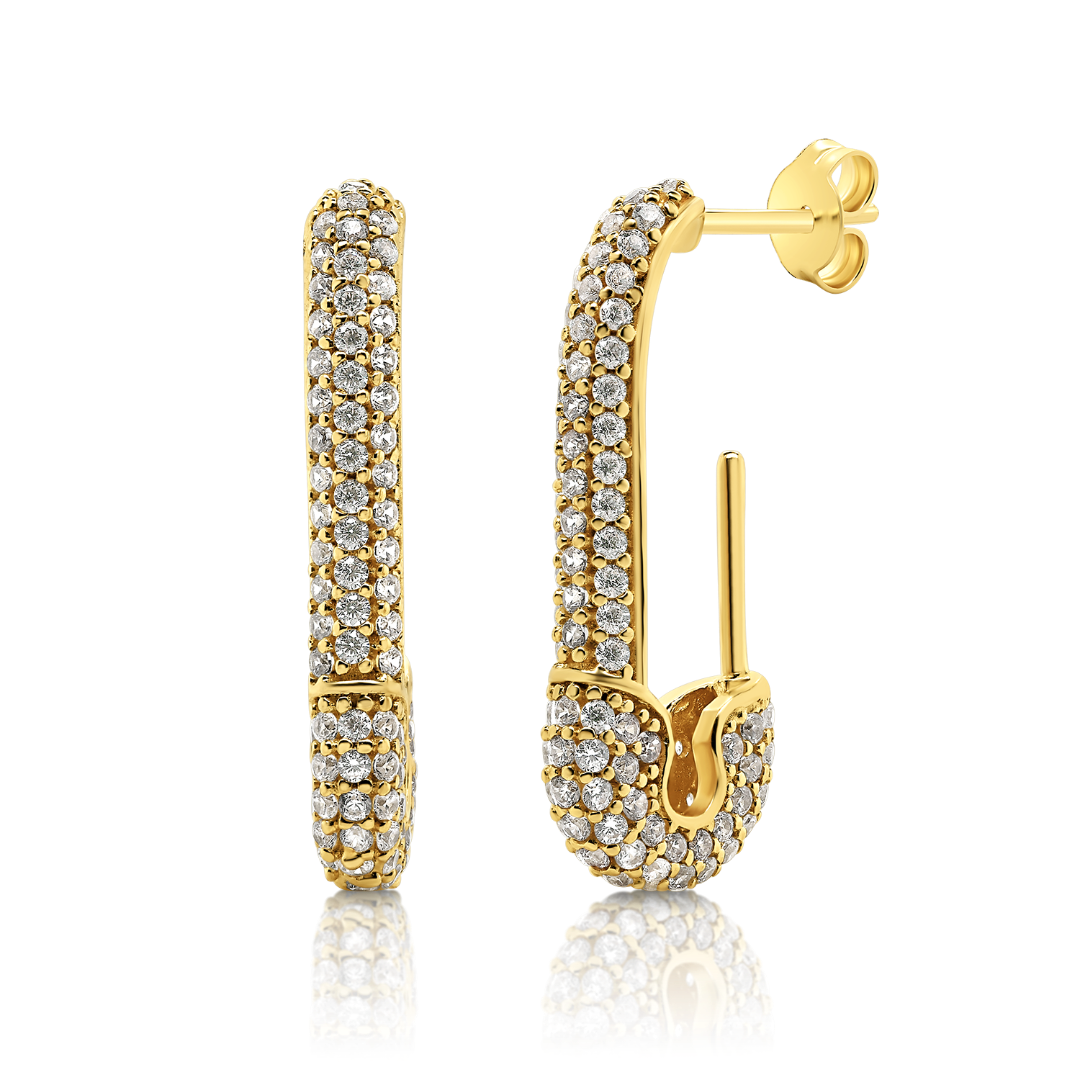 Cercei din aur galben de 14K cu pietre cubic zirconia.