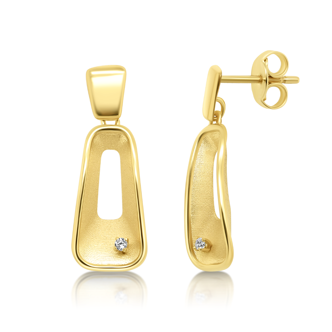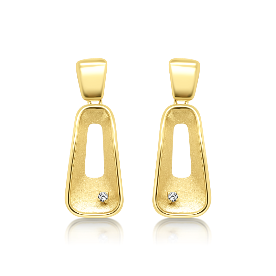 Cercei cu efect satinat din aur galben de 14K și zirconii incolore.