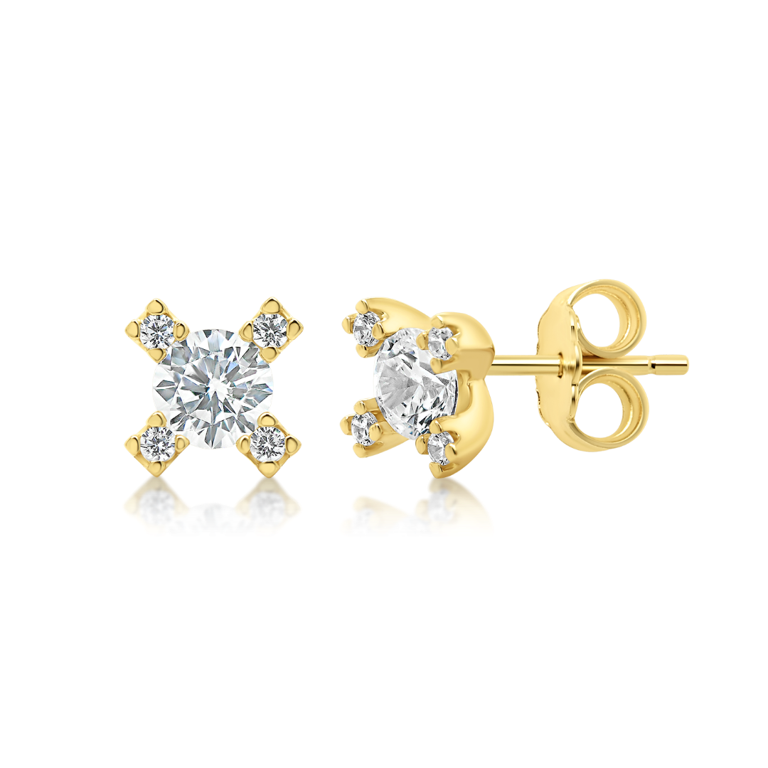 Cercei din aur galben de 14K cu pietre cubic zirconia.
