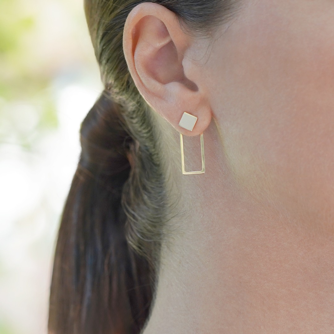 Cercei cu două opțiuni de purtare din aur galben de 14K.