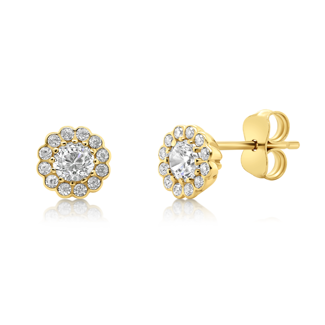 Cercei din aur galben de 14K cu pietre cubic zirconia.