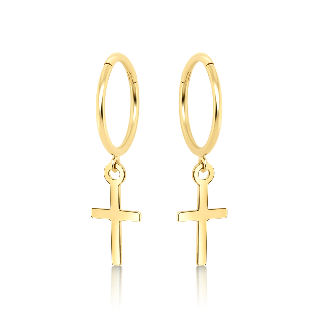 Cercei din aur galben de 14K cu elemente în formă de cruce.