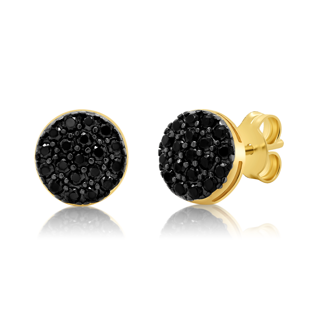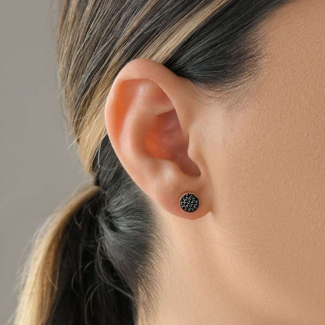 Cercei din aur galben de 14K cu pietre Cubic Zirconia negre.