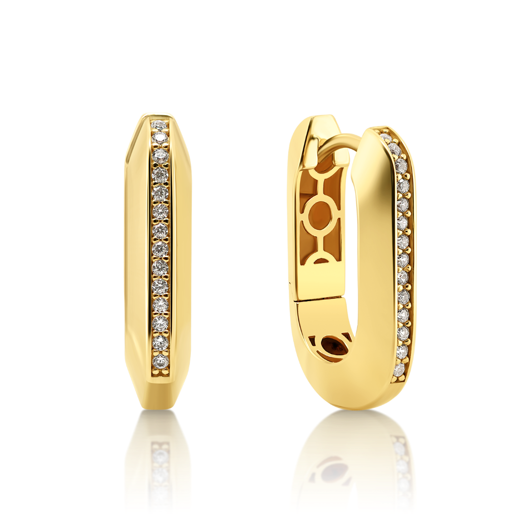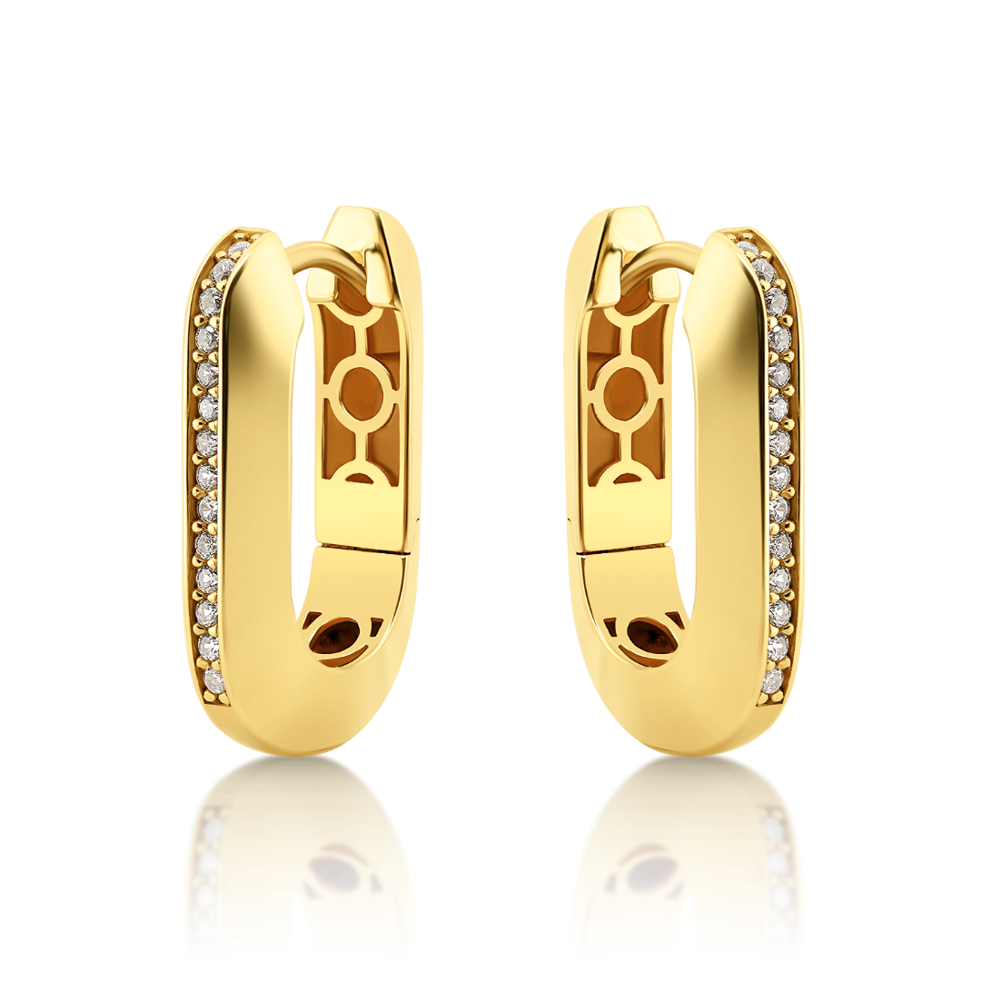 Cercei din aur galben de 14K cu zirconii incolore.