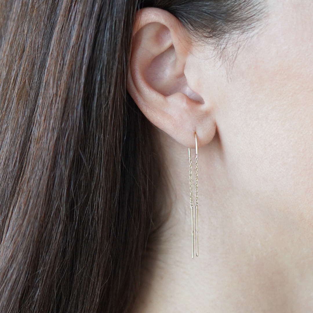 Cercei cu lanț din aur galben de 14K.