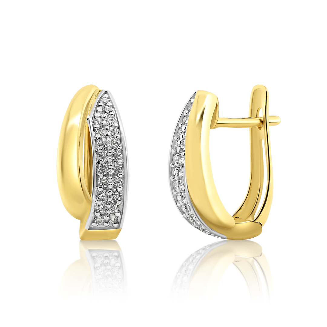 Cercei din aur galben de 14K cu zirconii incolore.