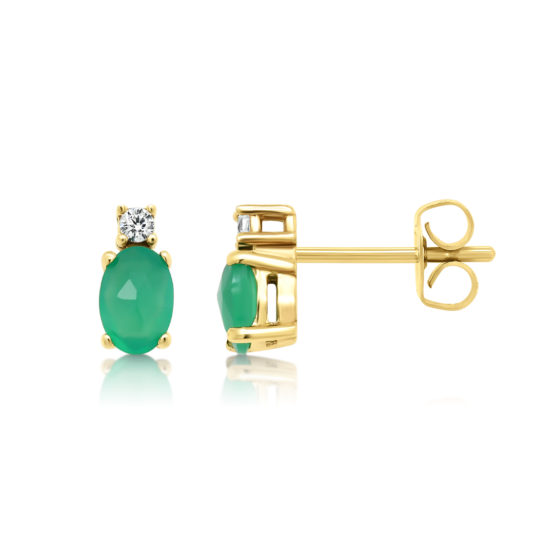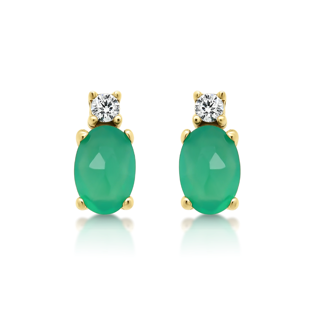 Cercei din aur galben de 14K cu Agate verzi și pietre cubic zirconia.