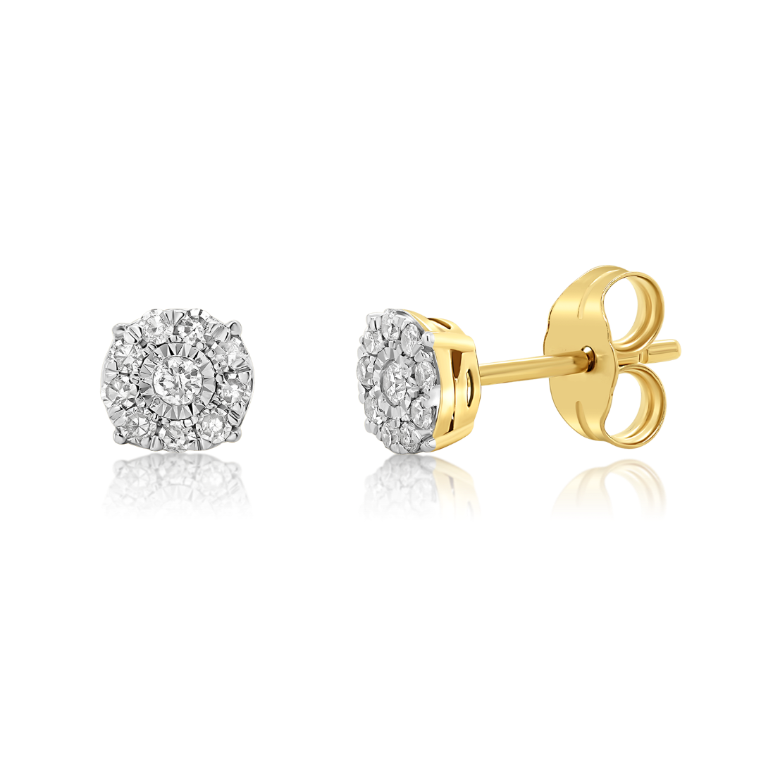 Cercei din aur galben de 14K cu Diamante naturale brilliant cut de 0.15ct.