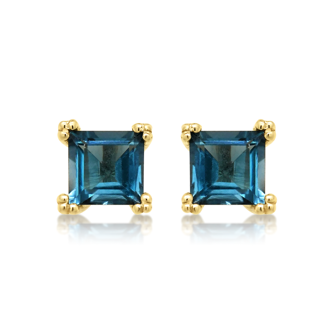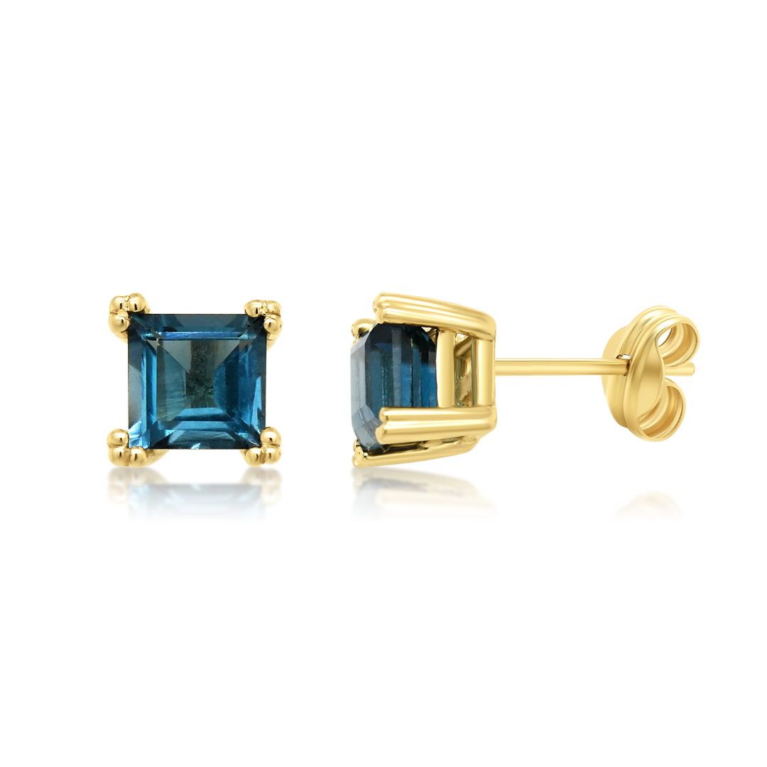Cercei din aur galben de 14K cu London Blue Topaz claritate AAA.