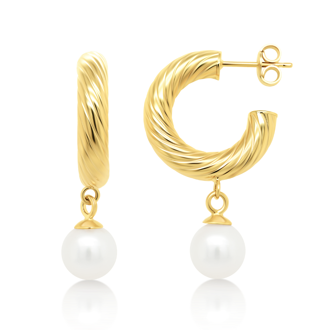 Cercei din aur galben de 14K cu perle de cultură.