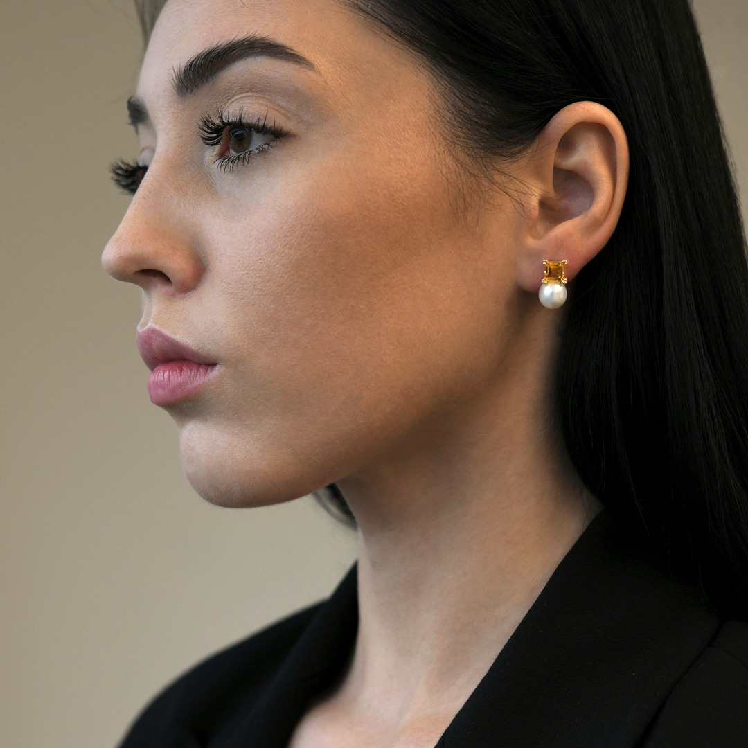 Cercei din aur galben de 14K, cu Perle de cultură și Citrin.