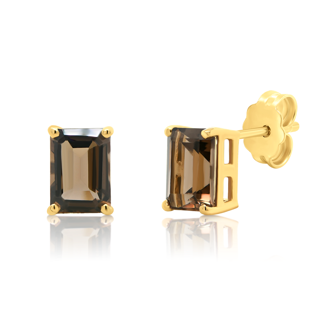 Cercei din aur galben de 14K cu Smoky Quartz.