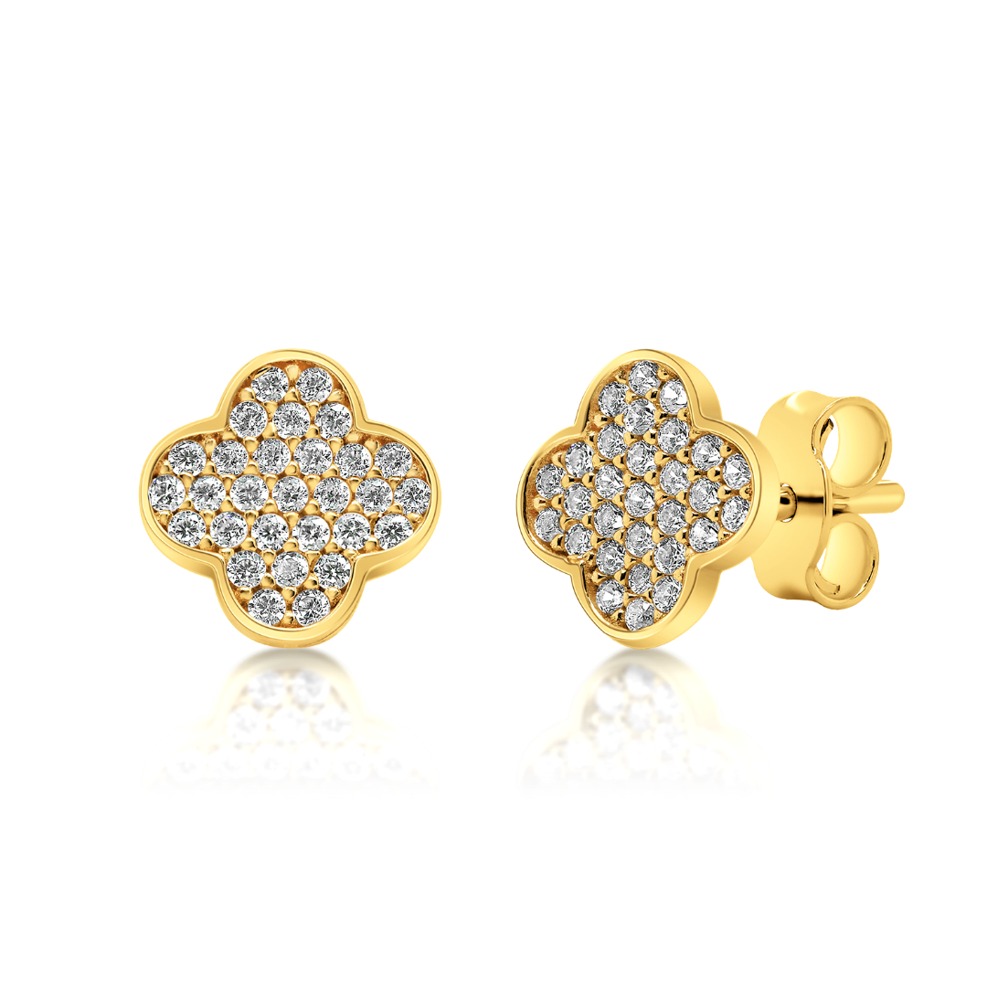 Cercei din aur galben de 14K cu pietre Cubic Zirconia albe.
