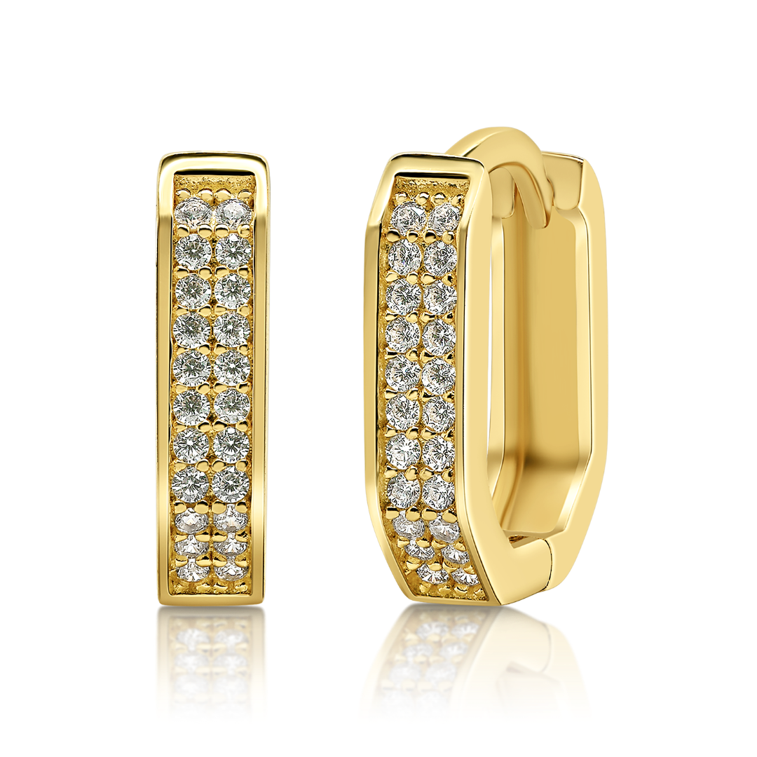 Cercei din aur galben de 14K cu pietre Cubic Zirconia albe.