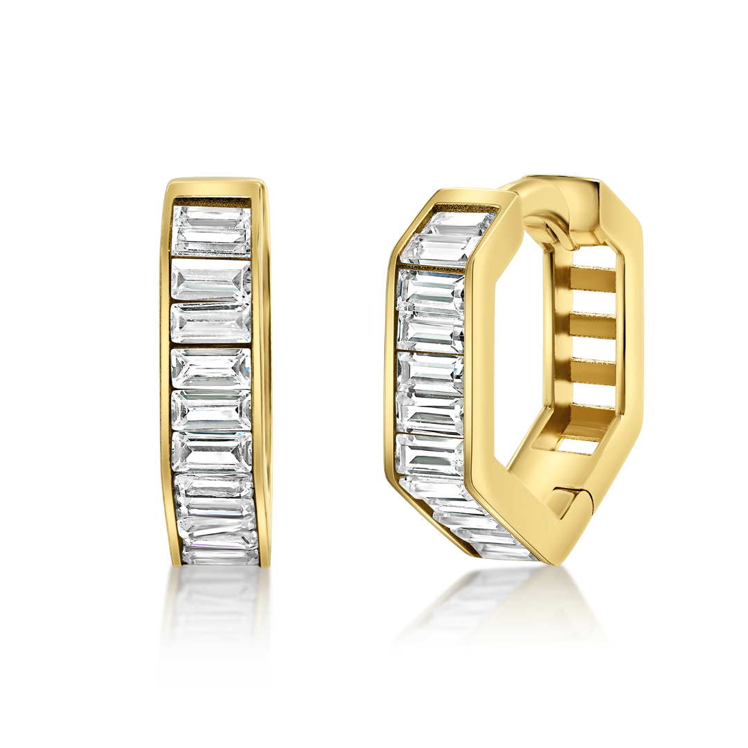 Cercei din aur galben de 14K cu pietre cubic zirconia.
