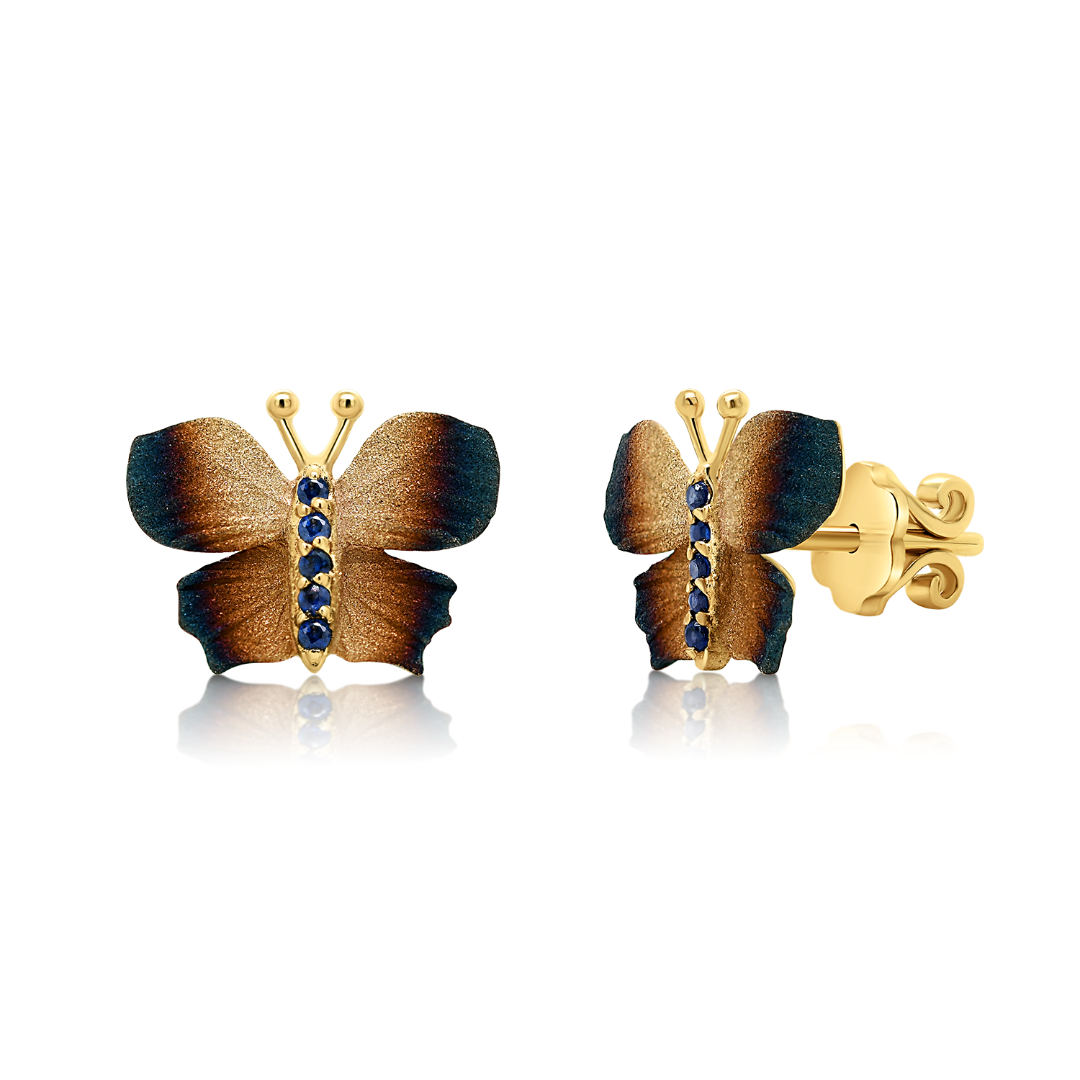 Cercei din aur galben de 14K încrustați cu 10 Safire albastre de 0.05ct.