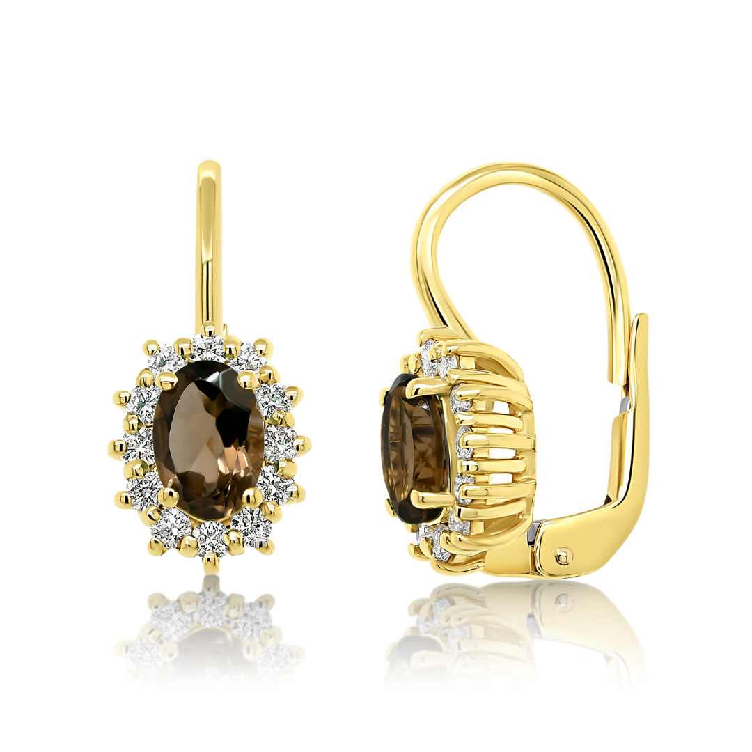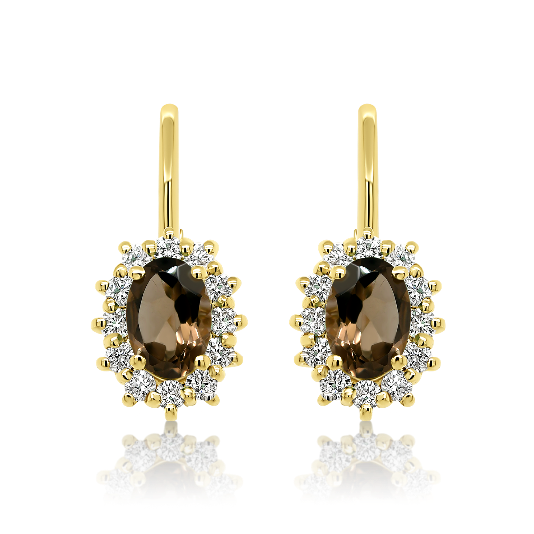 Cercei din aur galben de 14K cu Smoky Quartz