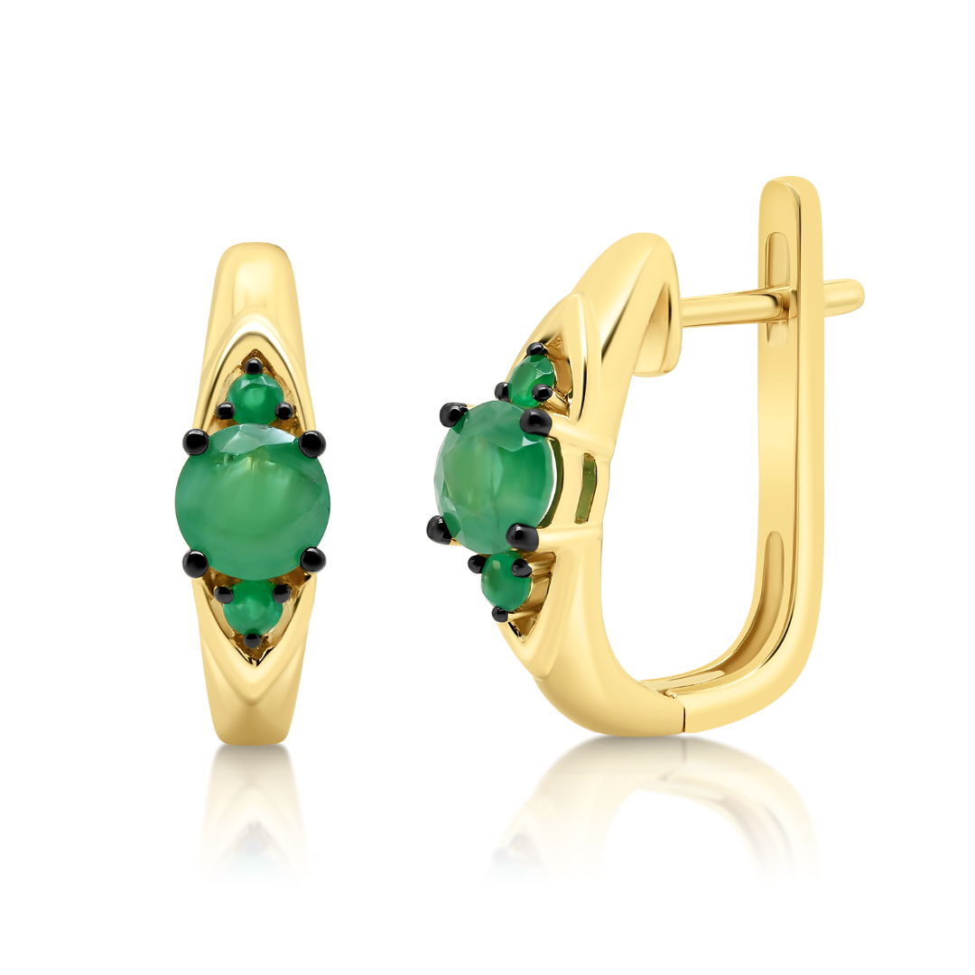 Cercei din aur galben de 18K cu rodiu negru și Smaralde naturale