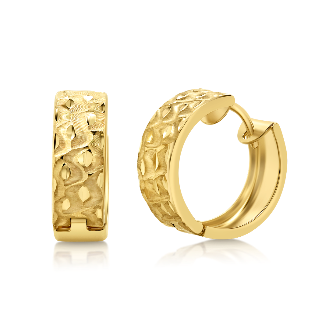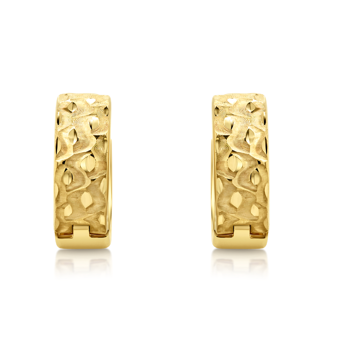Cercei rotunzi din aur galben de 14K cu design fațetat.