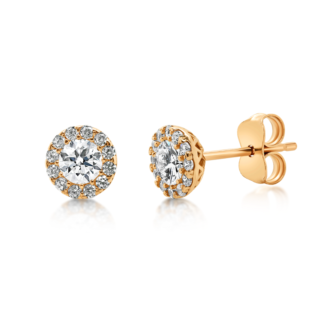 Cercei din aur roz de 14K cu pietre cubic zirconia.
