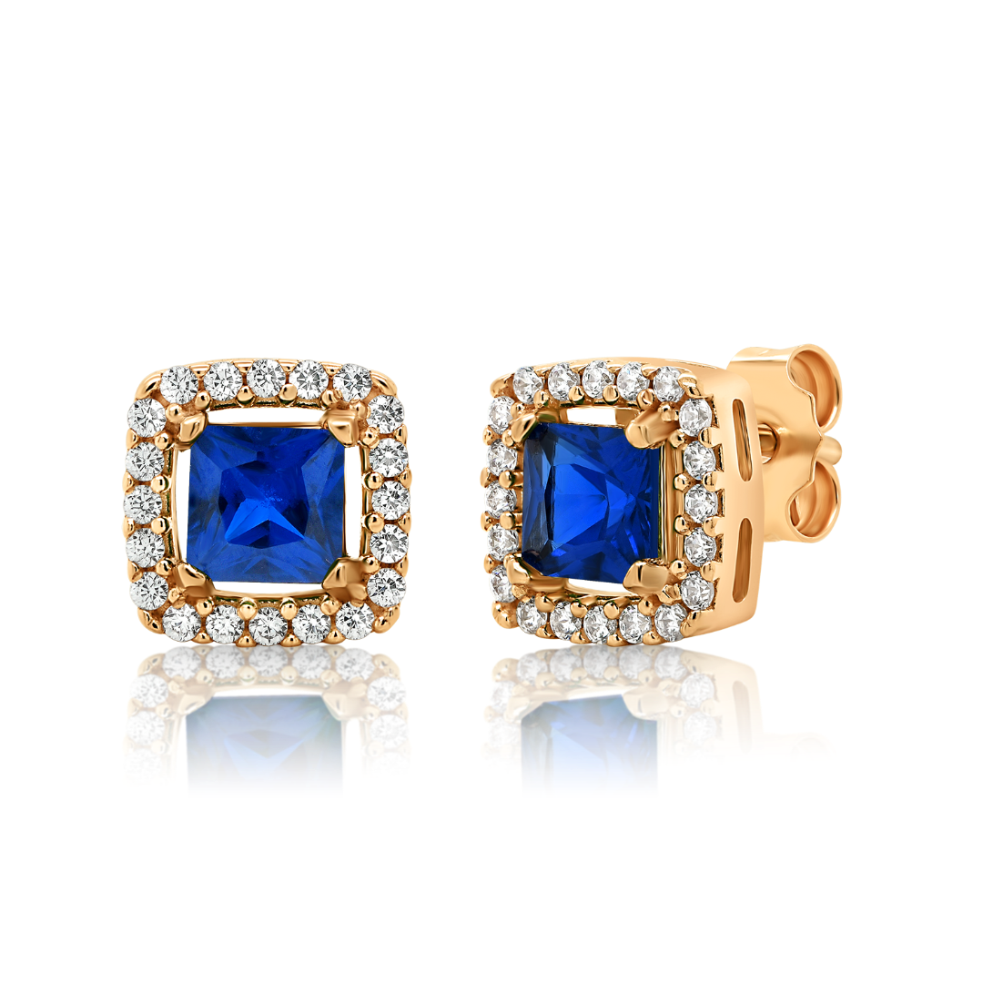 Cercei din aur roz de 14K cu pietre Cubic Zirconia.