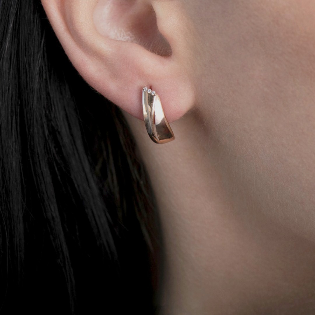 Cercei din aur roz de 14K cu pietre cubic zirconia.