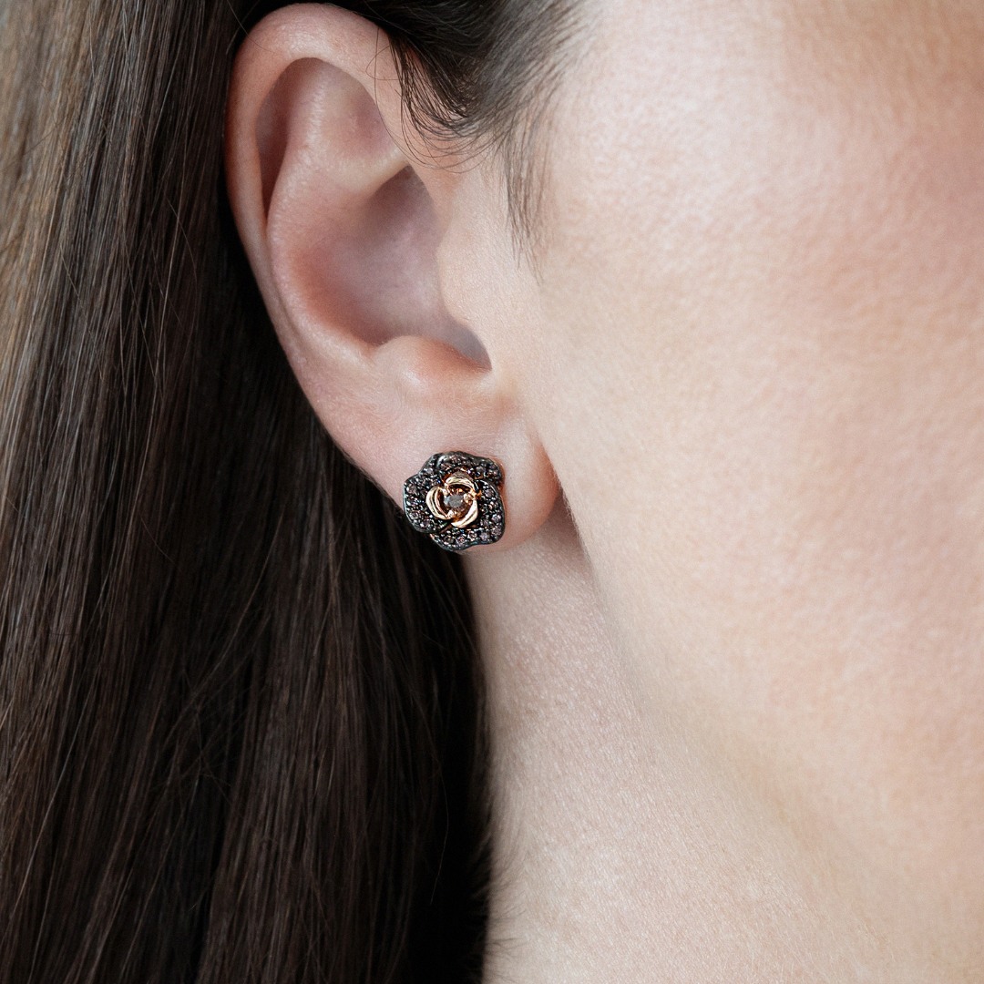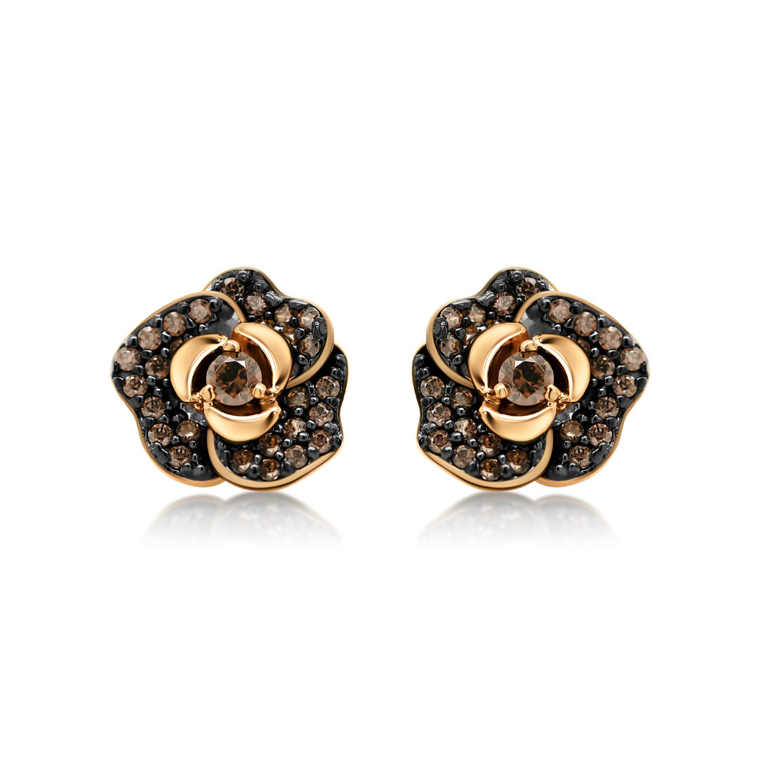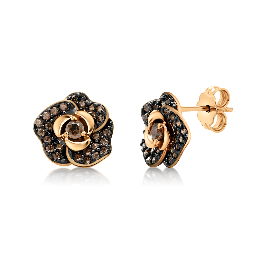 Cercei din aur roz de 14K cu zirconii maro.