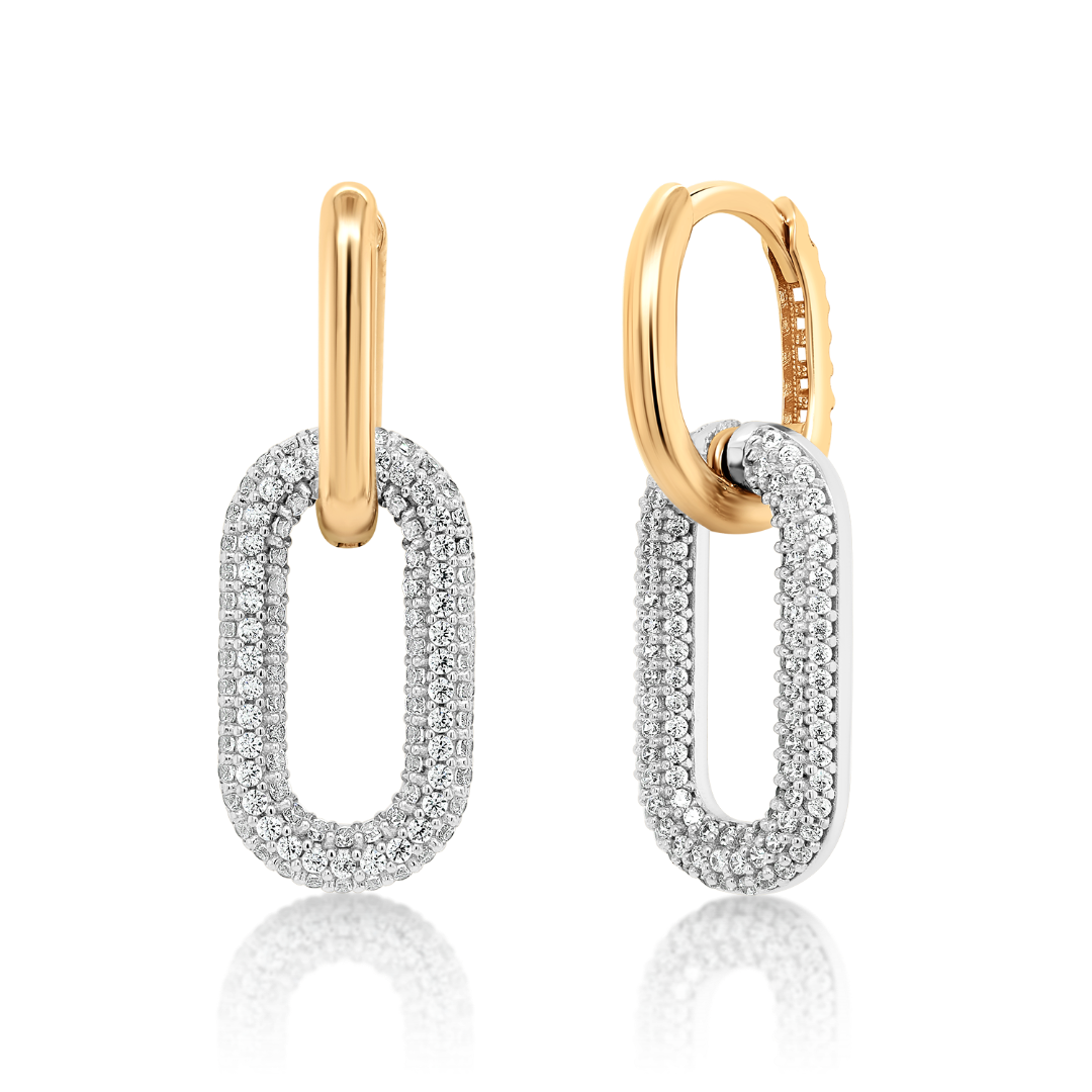Cercei din aur roz de 14K cu pietre Cubic Zirconia.