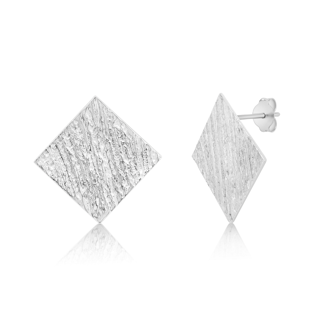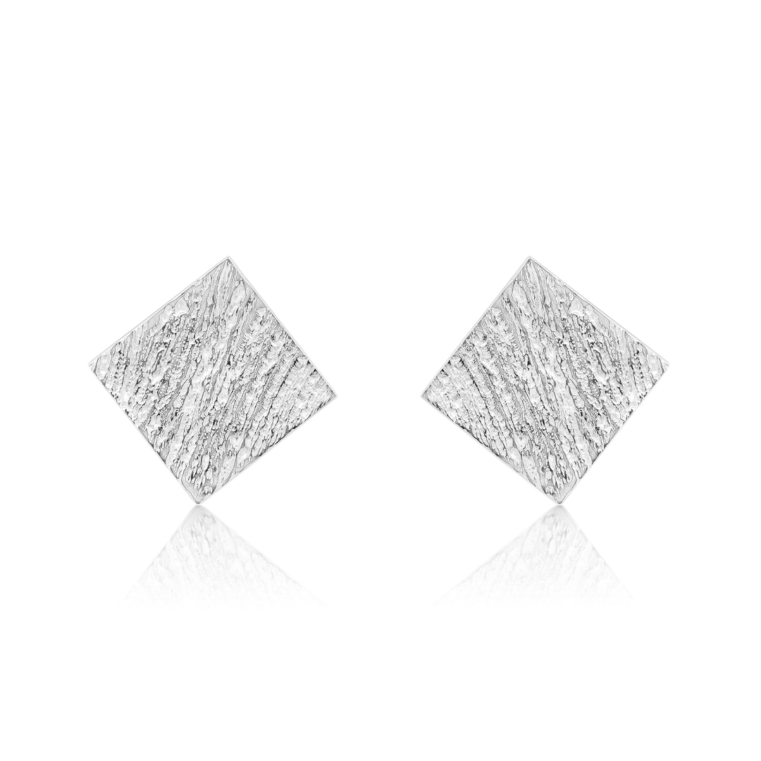 Cercei geometrici din aur alb de 14K cu efect mat.