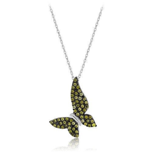 Lanț din aur alb de 14K cu pandantiv fluture și pietre Cubic Zirconia maro.