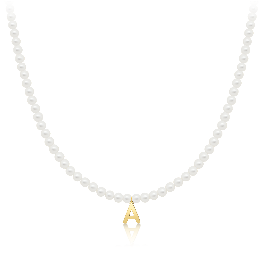 Colier cu perle și pandantiv din aur galben de 14K litera A.