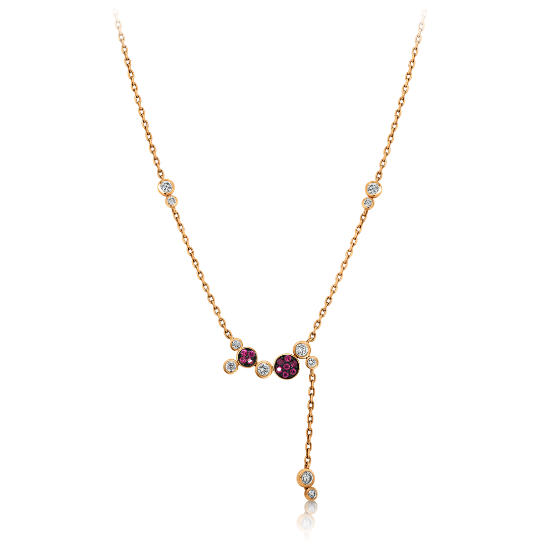 Colier din aur roz de 14K, cu pietre Cubic Zirconia albe și roz.