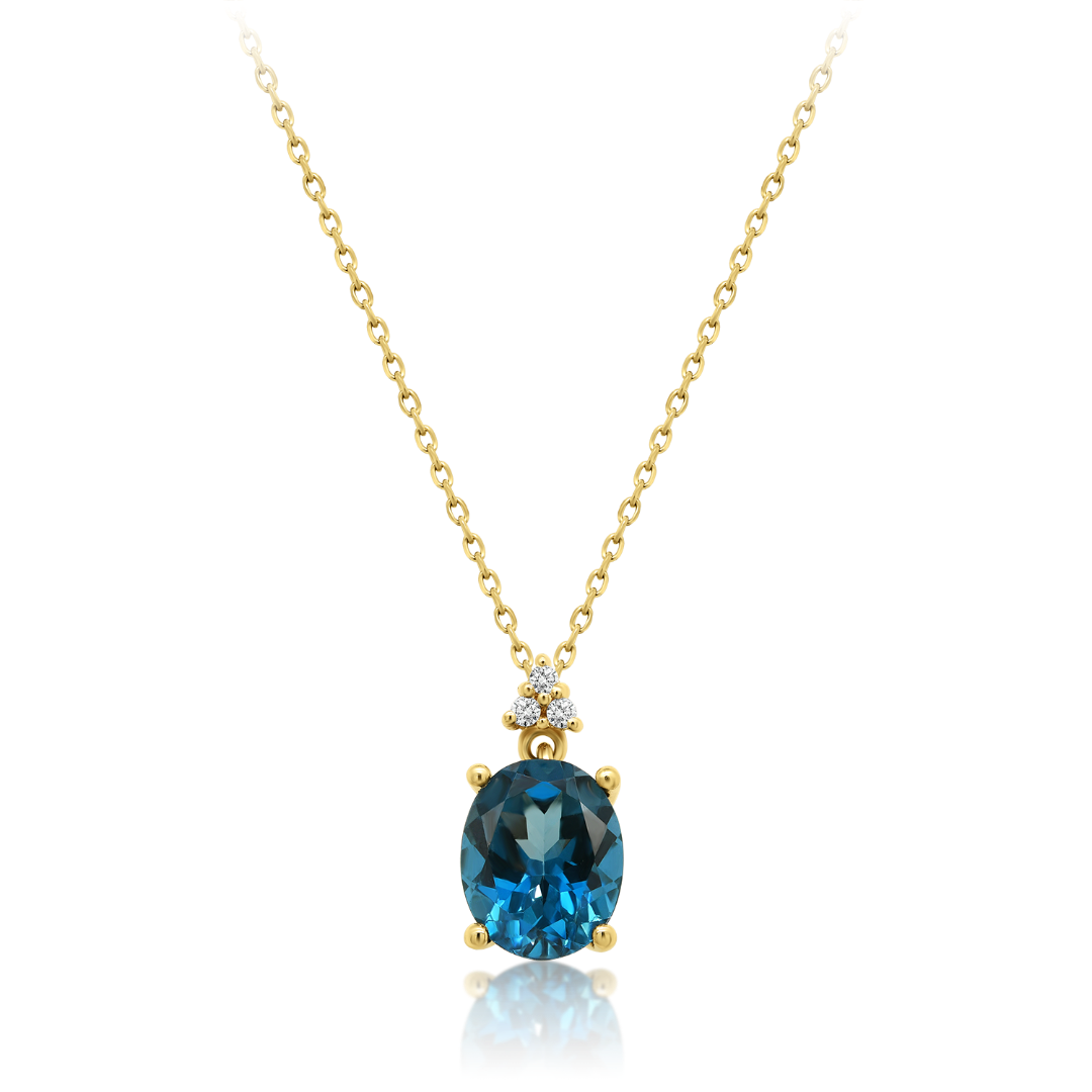 Lant din aur galben de 18K și pandantiv cu un London Blue Topaz claritate AAA și Diamante Round Brilliant de 0.06ct.