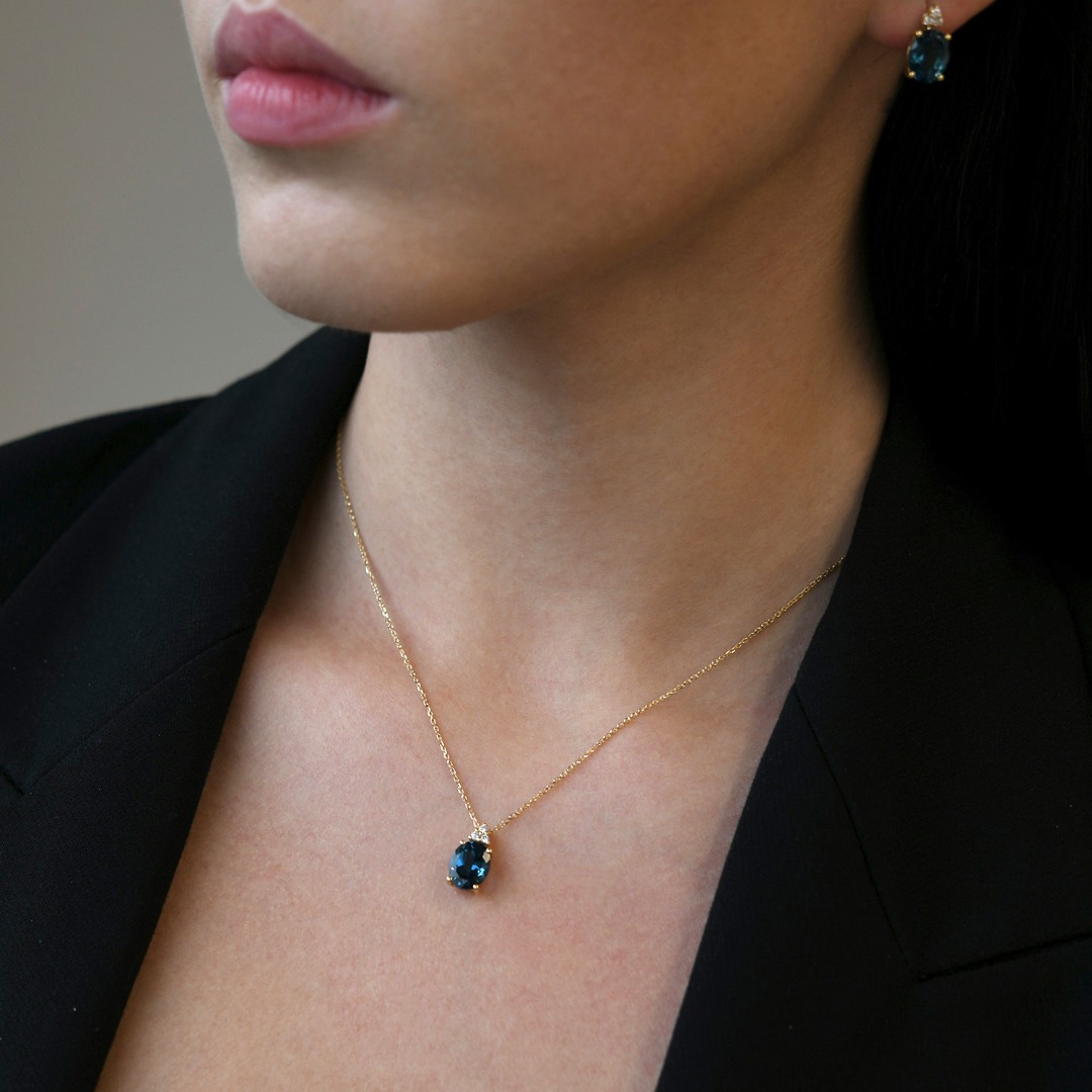Lanț din aur galben de 18K și pandantiv cu London Blue Topaz și Diamante naturale
