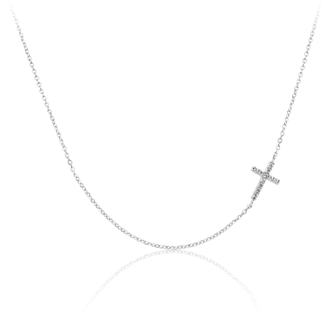Lanţ din aur alb de 14K și pandantiv cu pietre cubic zirconia.