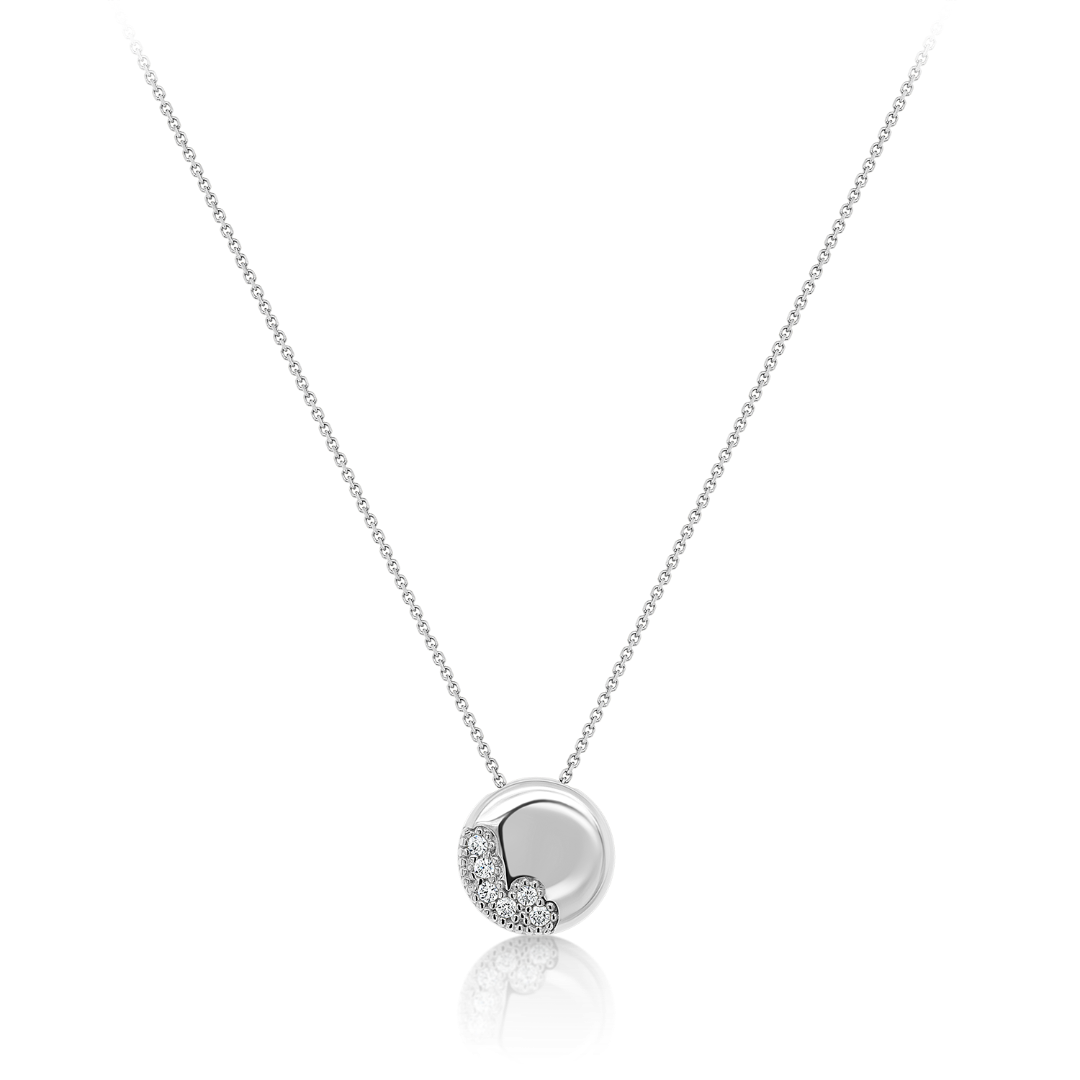 Lanț din aur alb de 14K și pandantiv rotund cu pietre Cubic Zirconia albe.