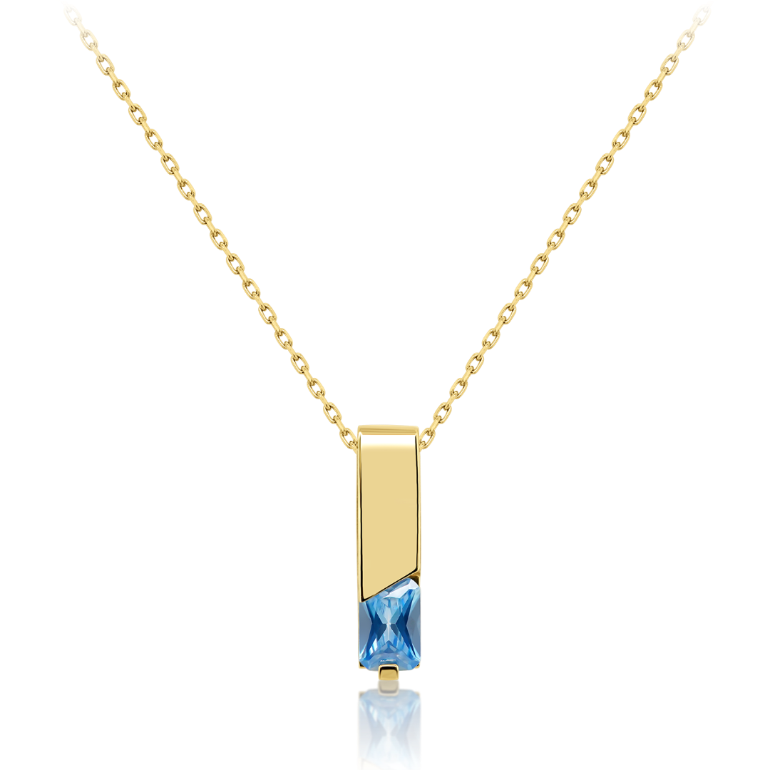 Lanț din aur galben de 14K și pandantiv cu zirconia albastră.