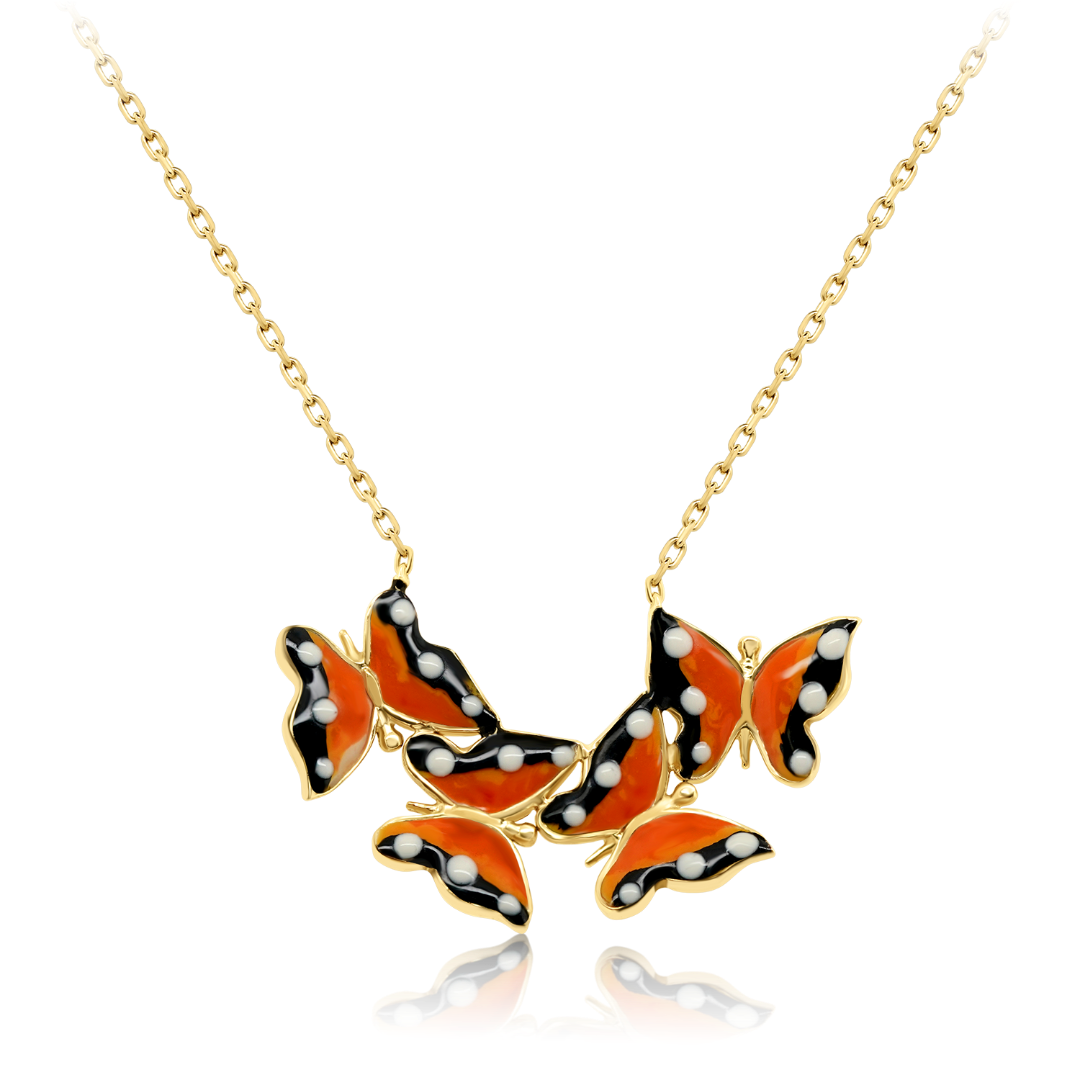 Lanț din aur galben de 14K și pandantiv cu email colorat