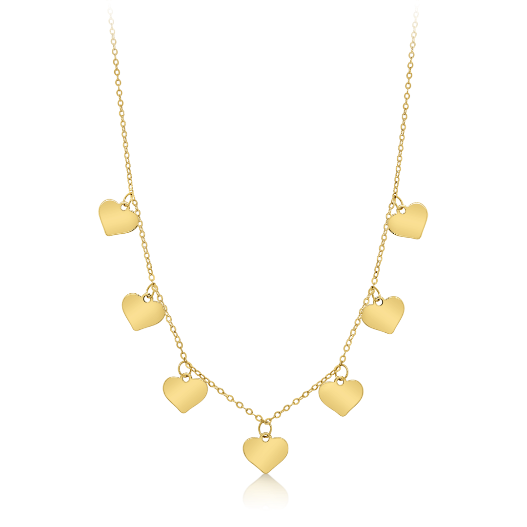 Colier din aur galben de 14K cu pandantive în formă de inimă.