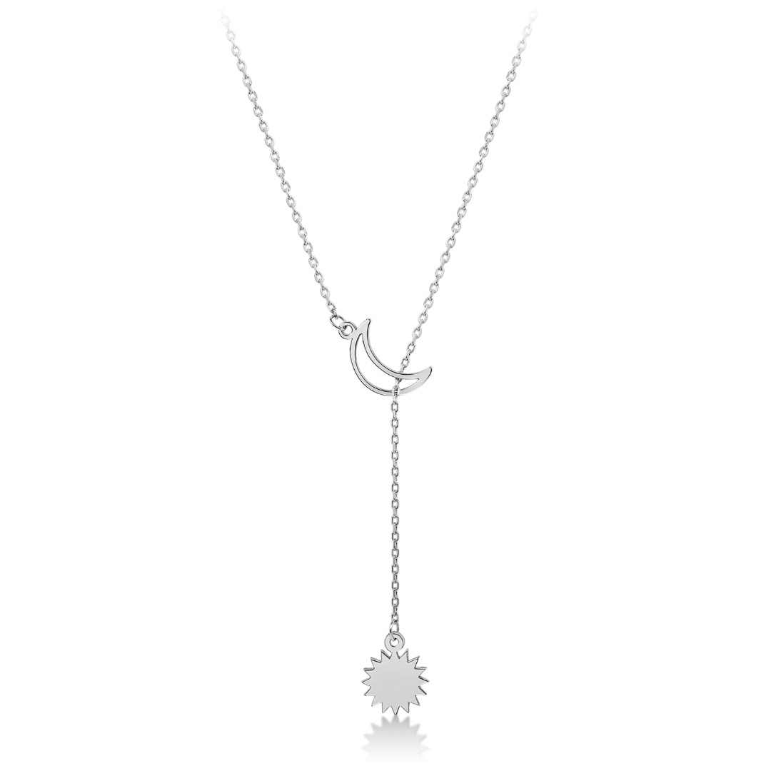 Lanț reglabil din aur alb de 14K, cu pandantive soare și semilună.