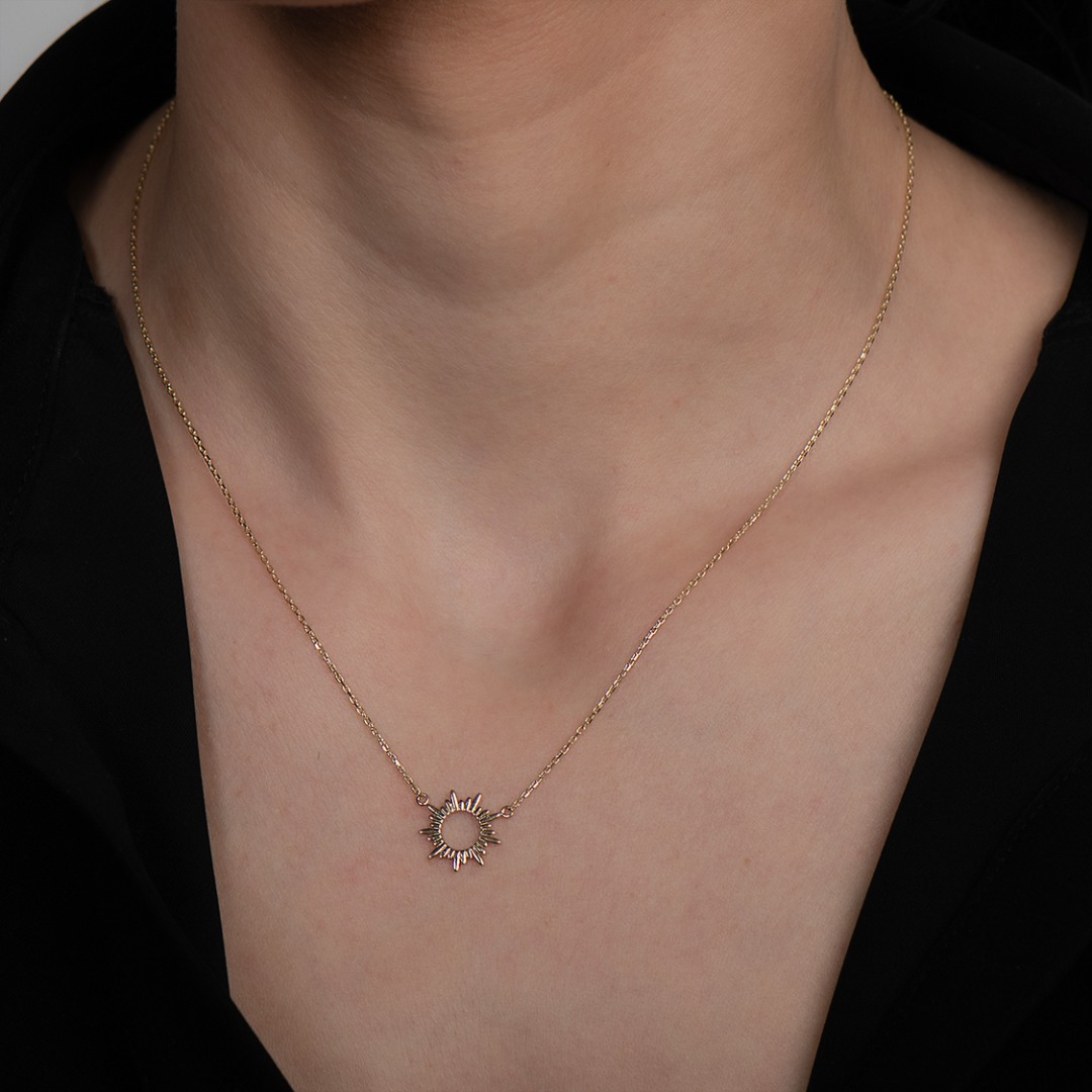 Lanț din aur galben de 14K cu pandantiv în formă de soare.