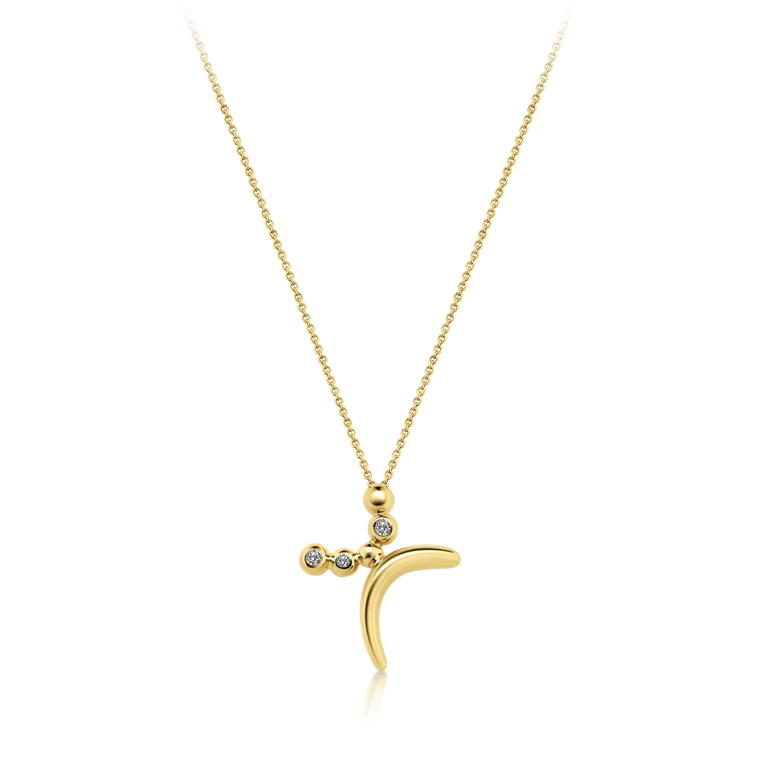 Lanț din aur galben de 14K și pandantiv cruce cu pietre cubic zirconia.
