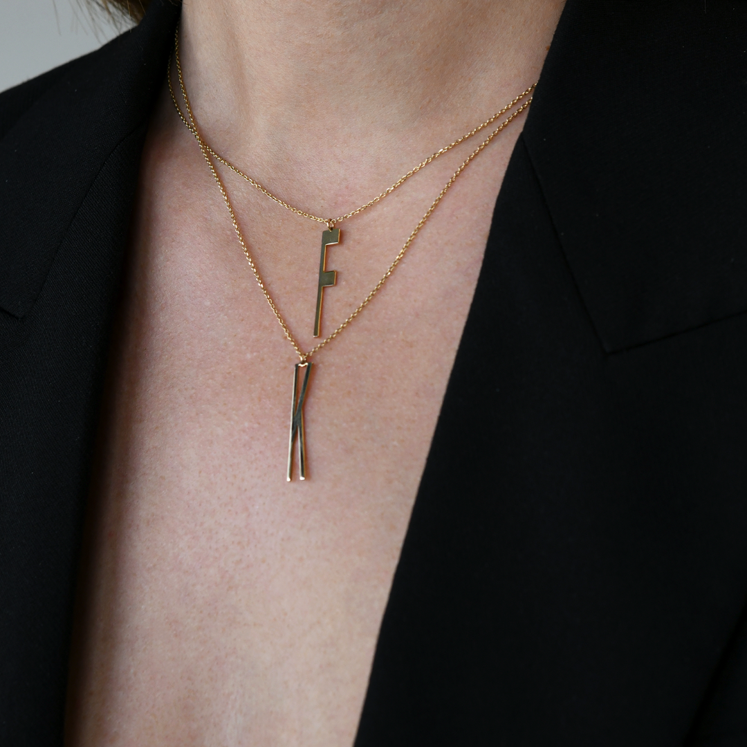 Lanț din aur galben de 14K cu pandantiv litera F.