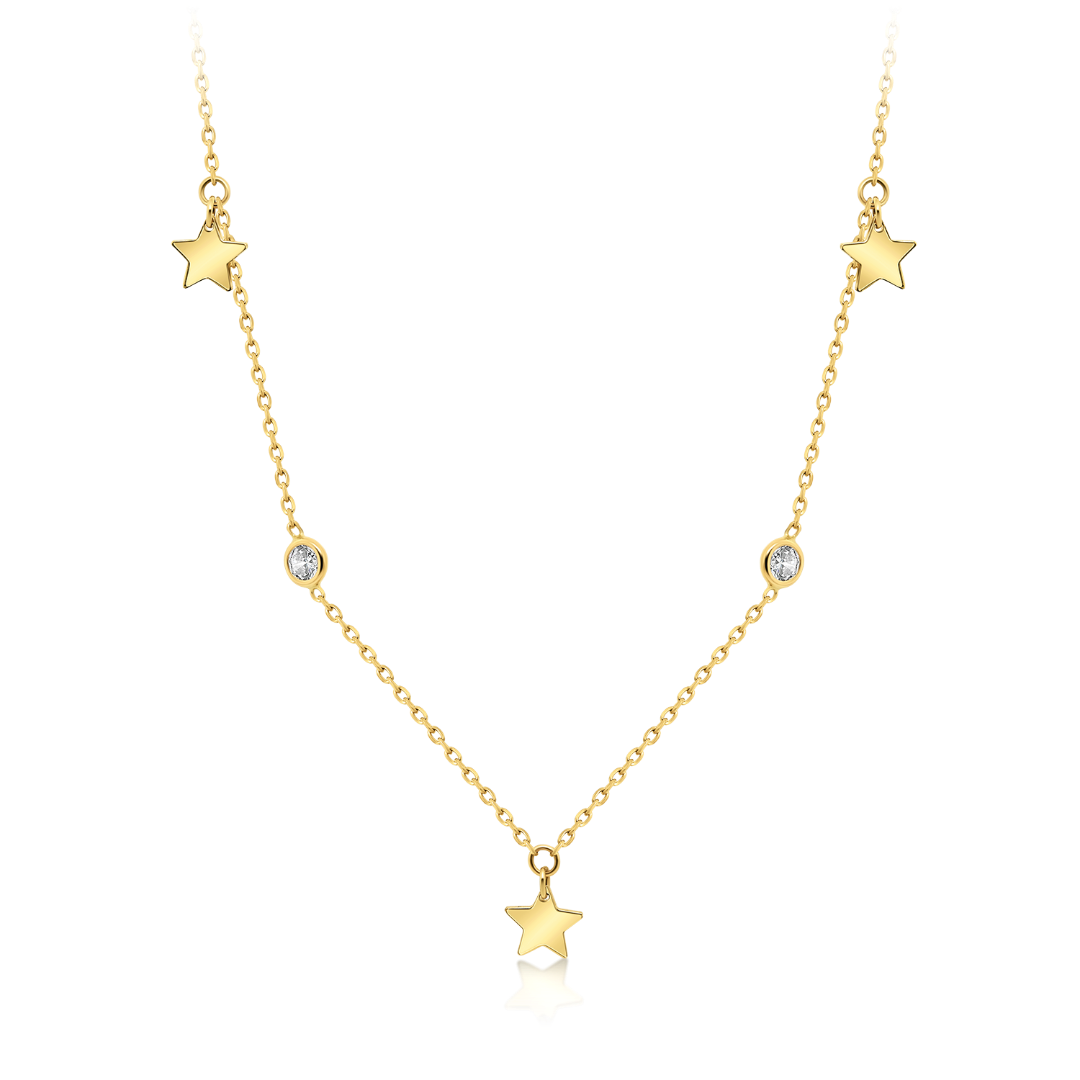 Lanț din aur galben de 14K, cu pandantive în formă de stea și pietre Cubic Zirconia.