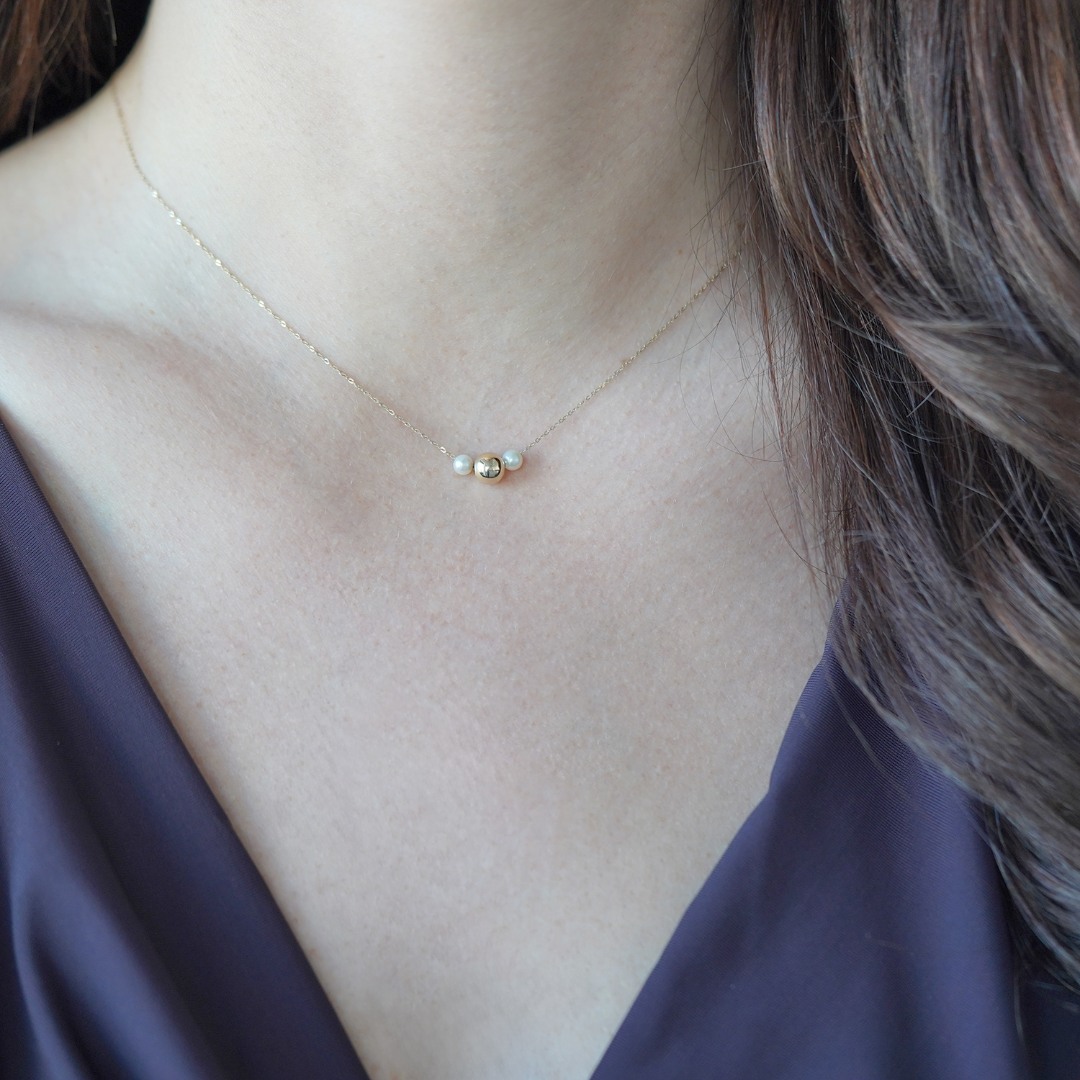Lanț din aur galben de 14K și pandantiv cu perle de cultură.