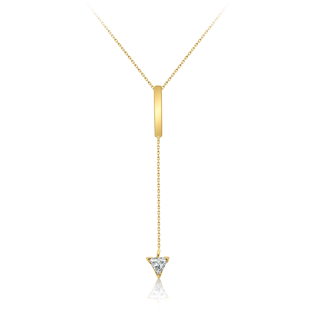 Lanț din aur galben de 14K și pandantiv cu piatră Cubic Zirconia.