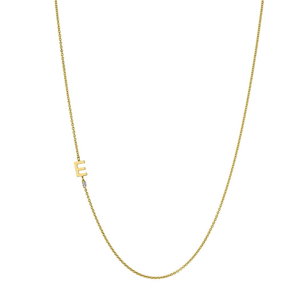 Lanț din aur galben de 18K și pandantiv în forma literei E cu Diamant natural.