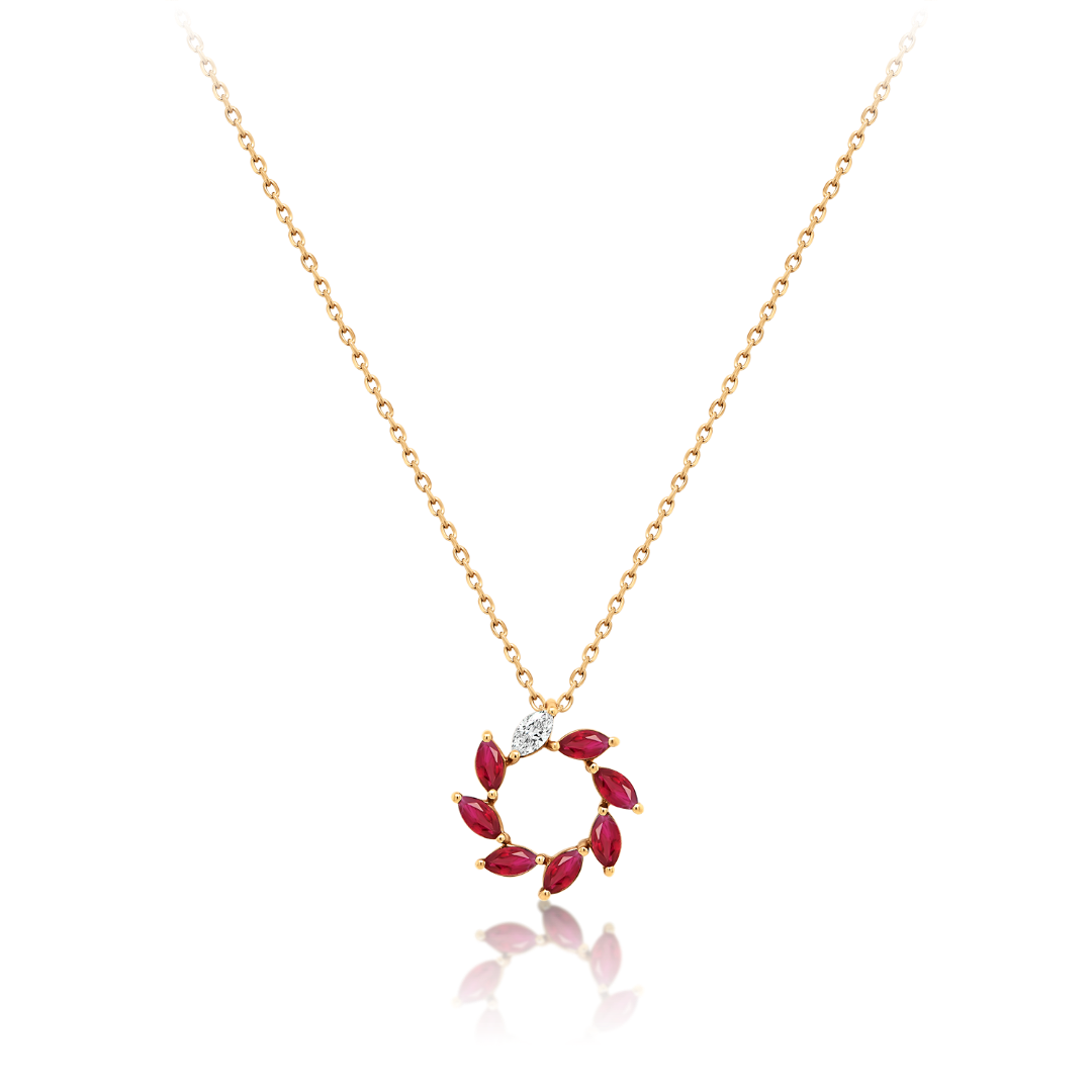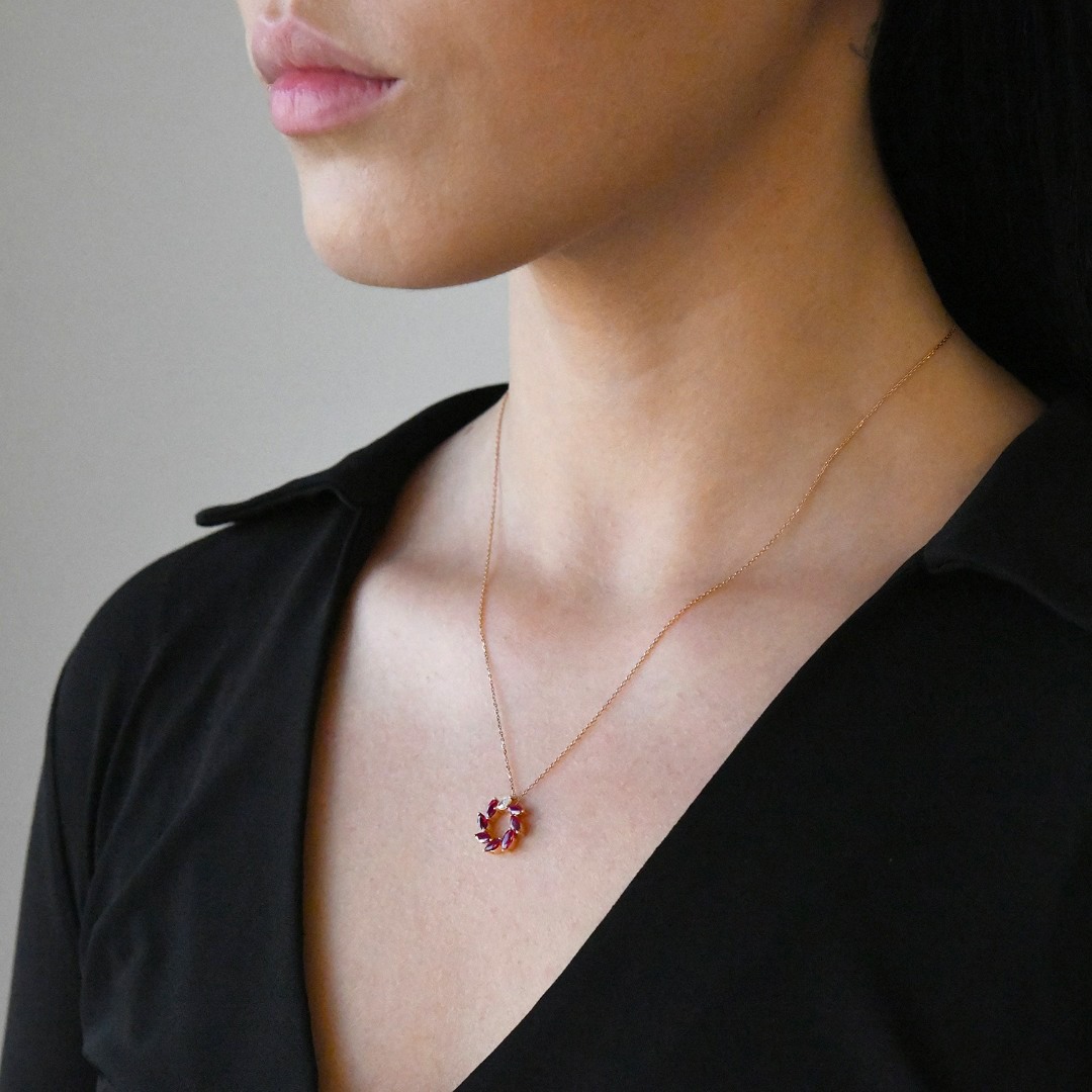 Lanț din aur roz de 18K și pandantiv cu Diamante și Rubine naturale
