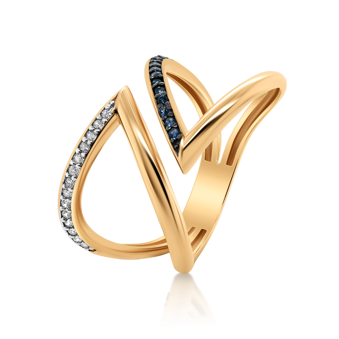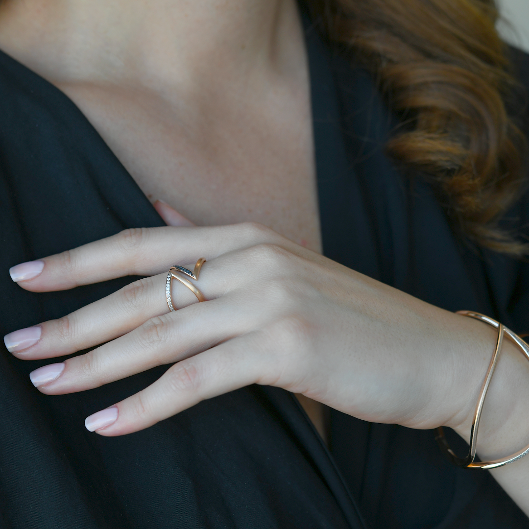 Inel din aur roz de 14K, cu Rodiu și pietre cubic zirconia.
