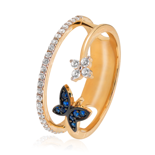 Inel din aur roz de 14K cu elemente tip fluture, pietre Cubic Zirconia.